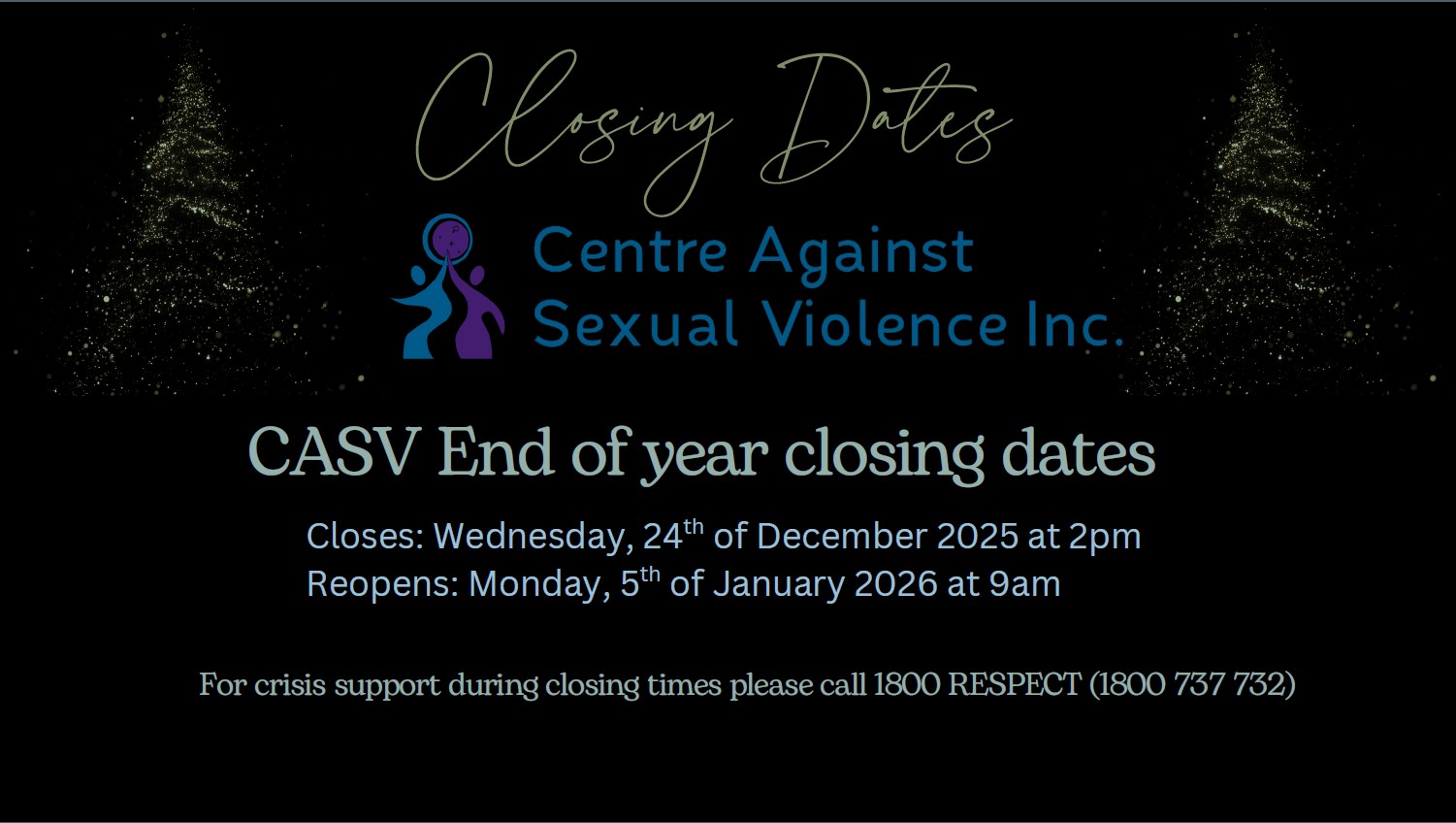 For after hours support, contact the Sexual Assault Helpline on 1800 010 120